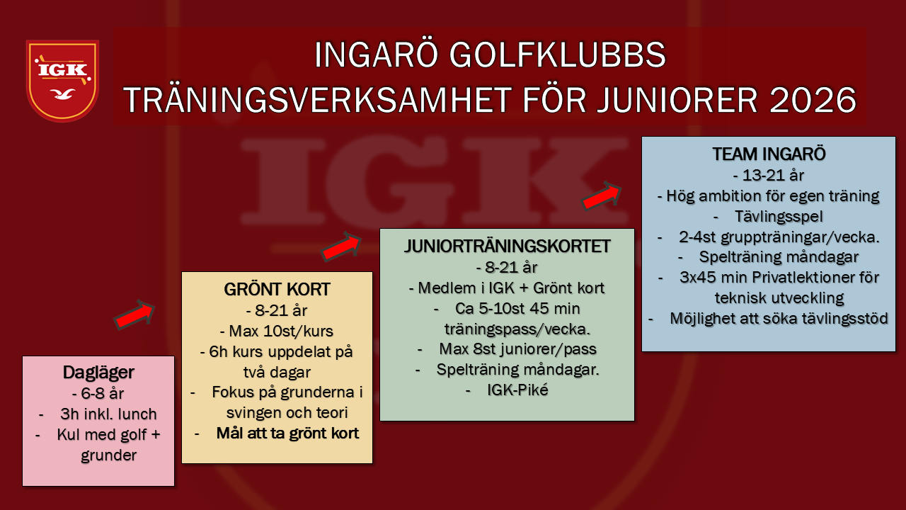 Vårt långsiktiga mål är att juniorverksamheten på Ingarö Golfklubb ska uppfattas som en av Sveriges bästa.